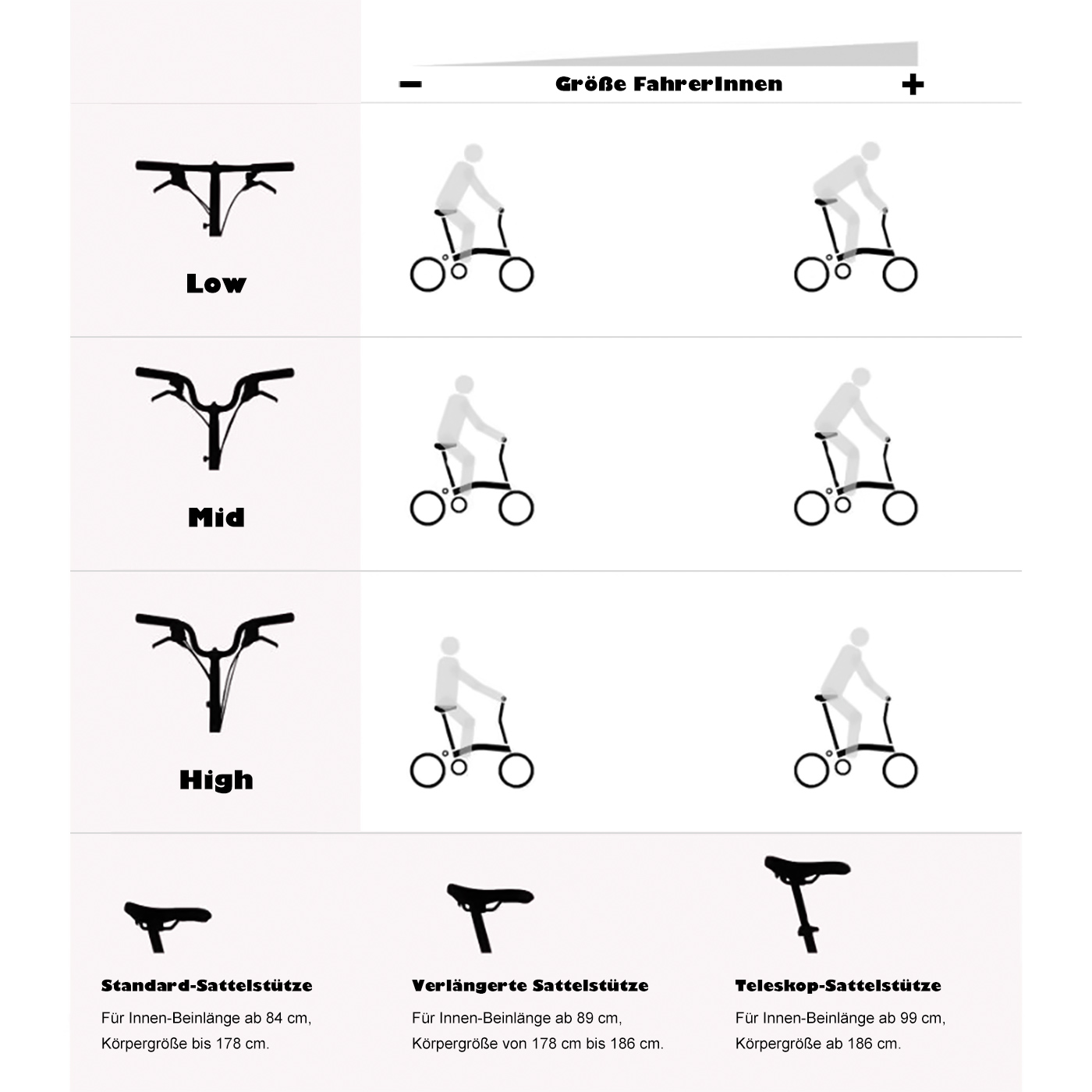 Verlängerte Sattelstütze für Beinlängen bis ca. 90 cm (Körpergröße bis ca. 186 cm) in gloss black.