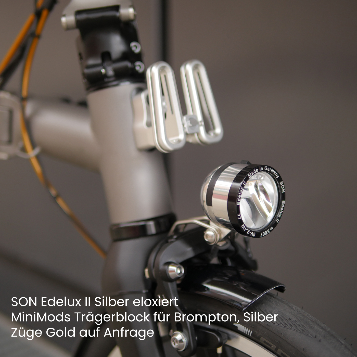 - Brompton T Line Trägerblock kann optional mitbestellt werden. Gewinde für den Trägerblock sind vorhanden.